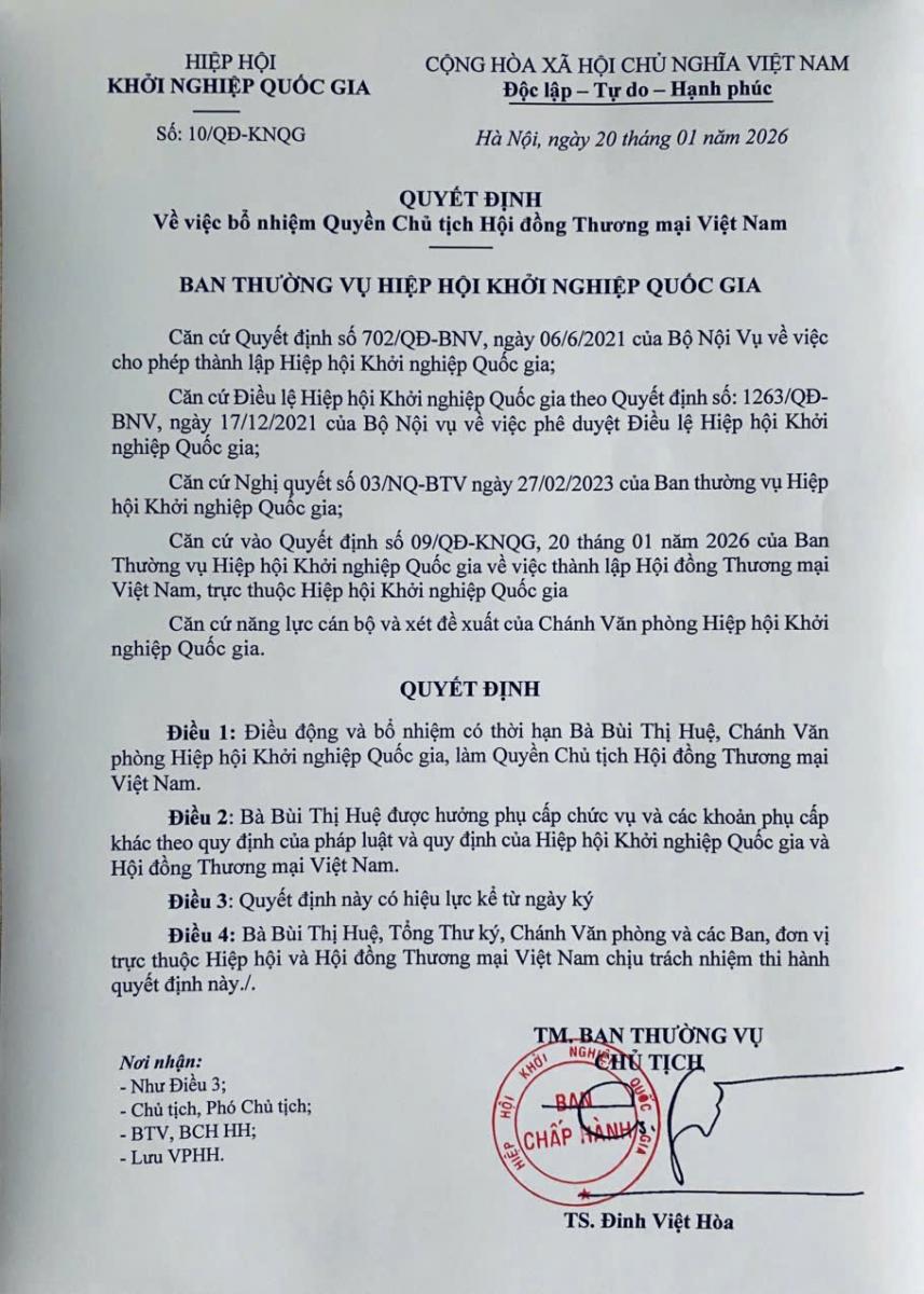 (VINEN) - Trong bối cảnh nền kinh tế Việt Nam đang bước vào giai đoạn chuyển mình mạnh mẽ, với khát vọng vươn lên trong chuỗi giá trị khu vực và toàn cầu, cộng đồng doanh nghiệp và nhà sáng lập ngày càng cần một không gian kết nối chuyên sâu, thực chất và có chiều sâu chiến lược. Từ yêu cầu thực tiễn đó, Hội đồng Thương mại Việt Nam – Vietnam Council of Commerce (VCC) chính thức được thành lập dưới sự bảo trợ và sáng lập của Hiệp hội Khởi nghiệp Quốc gia, đánh dấu một bước đi quan trọng trong việc kiến tạo hệ sinh thái hợp tác – đầu tư – phát triển bền vững cho doanh nghiệp Việt.
