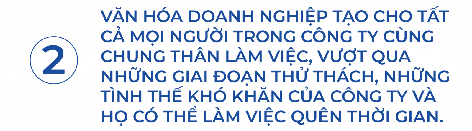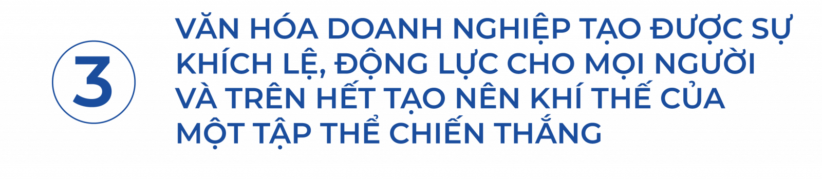 Thử tưởng tượng, nếu tất cả mọi người đều trong khí thế của những người chiến thắng, khí thế của những người đang trên con đường tiến tới vinh quang? Với họ không bao giờ có con đường thứ hai ngoài chiến thắng. Điều này vô cùng cần thiết, vì tất cả mọi người đều tập trung vào một mục tiêu. Khi họ đã đặt vào một mục tiêu cho một tập thể chiến thắng thì tất cả họ đều muốn đồng lòng, cùng chung sức để thực hiện. Tinh thần tập thể đều phấn chấn. Đó là chìa khoá cho sự thành công và cũng là chìa khoá cho sự đoàn kết. Và để có được một tập thể chiến thắng ấy chỉ khi có một Văn hóa doanh nghiệp.
