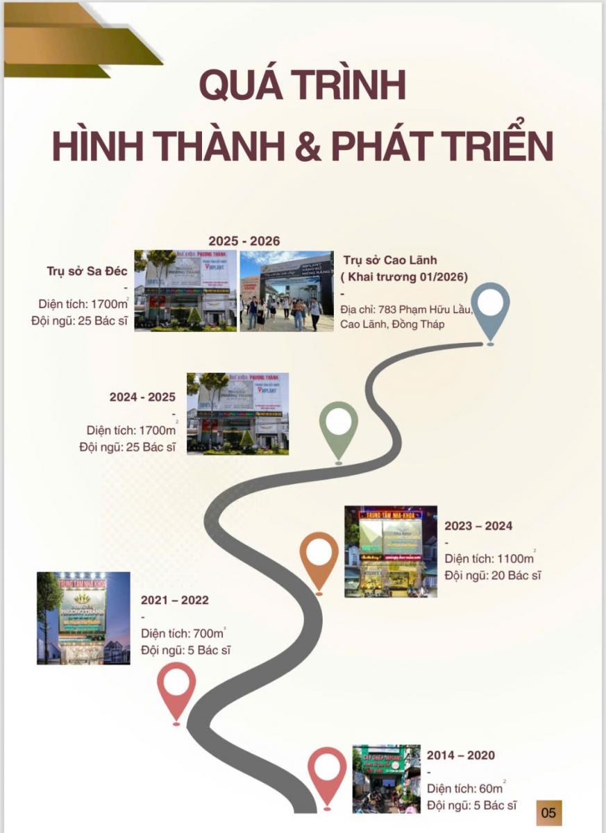 Thành lập năm 2014 tại Đồng Tháp, Nha khoa Phương Thành khởi đầu với quy mô khiêm tốn: diện tích chỉ 60m², đội ngũ 5 bác sĩ. Khi ấy, khái niệm nha khoa chất lượng cao ở khu vực Đồng bằng sông Cửu Long vẫn còn khá xa lạ. Tuy nhiên, chúng tôi tin rằng nếu làm đúng, làm tử tế và bền bỉ, thị trường sẽ tự mở ra con đường của nó.